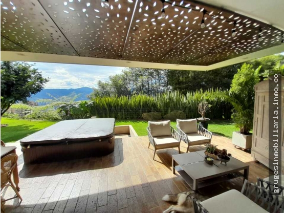 Venta Casa Campestre Altos del Poblado /Calera con linda vista al valle. Son 735m2 en 2.niveles en el 1 nivel encontramos 1 baño social, 1 deposito, La alcoba ppal. Con terraza, 2 vestier, 1 amplio baño con lavamanos  doble.  1 sala grande e independiente con ventanales a doble altura, y domotica, 1 patio interior con un bonito jardín, 2 fuentes de agua,1 comedor conectado a 1 terraza  y jardín con sistema de riego 1 jacuzzi y  1 bbq. Cocina moderna abierta con isla, torre de hornos, extractor a techo muy buenos anaqueles , deposito, cuarto de vajillas, zona de lavandería amplia e iluminada, alcoba del servicio con baño. Por.medio de.unas escalas llegamos al 2 nivel donde encontramos 3 alcobas todas con balcón, baño y vestier, 1 estudio o biblioteca. 3 garajes dobles lineales,cuartos útil y de pánico. Ventanas insonorizadas.   Valor venta $8.500.000.000   Valor admon.$1.580.000   Valor.predial $10.000.000 trimestre.